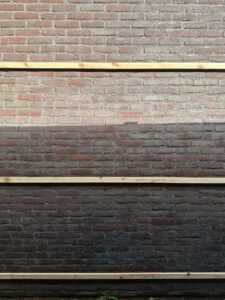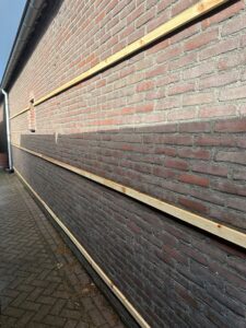 Op de onderstaande foto’s zie je hoe de basis wordt gemaakt met houten latten op de muur.