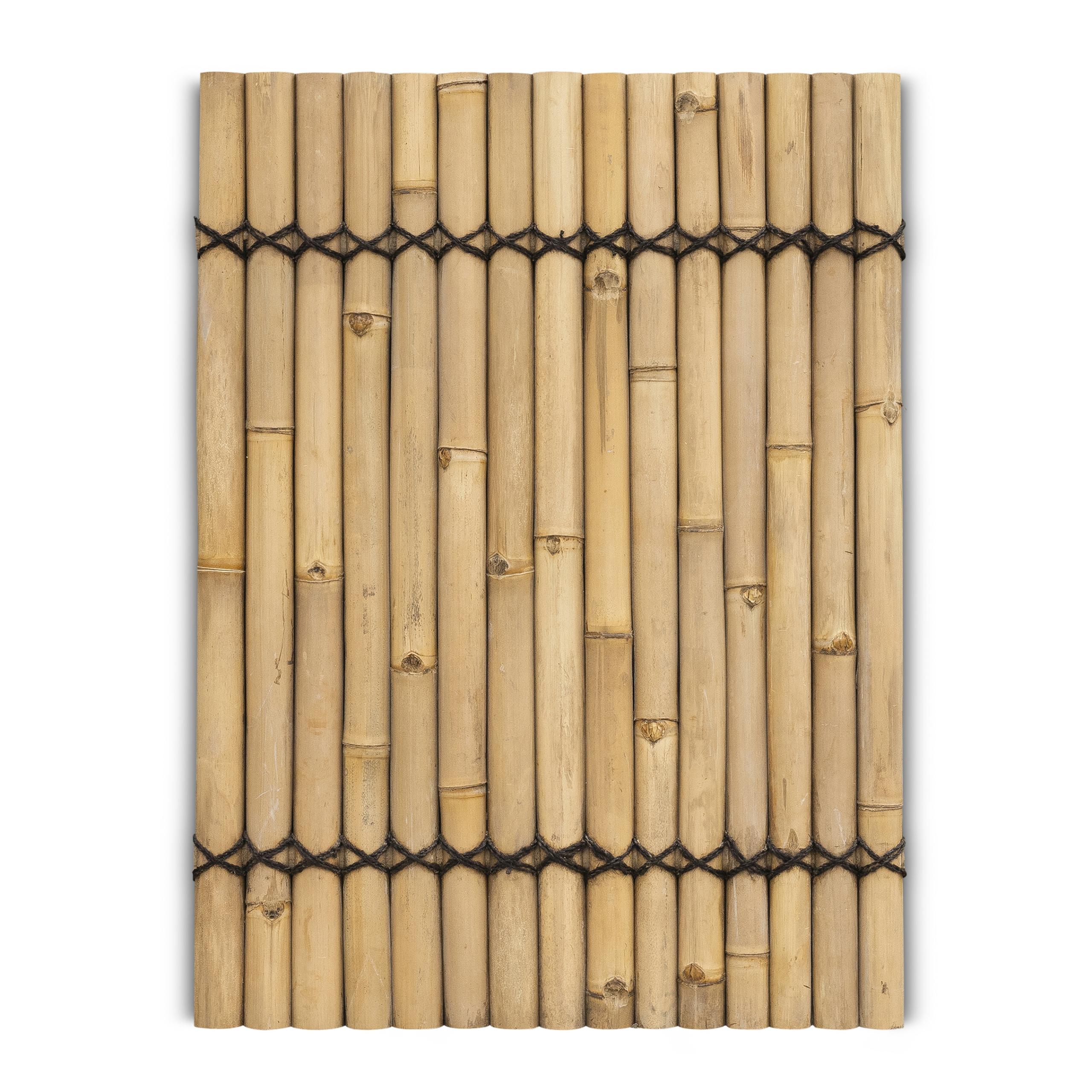 Bamboe schutting halfrond 90 x 120 cm gemaakt van gehalveerde bamboe palen. Dit scherm heeft een naturel kleur. Binnen no-time een vakantiegevoel in je eigen achtertuin, wie wil dat nu niet? De palen hebben een diameter van 5-8 cm en zijn via horizontale bamboestokken aan elkaar gemonteerd.