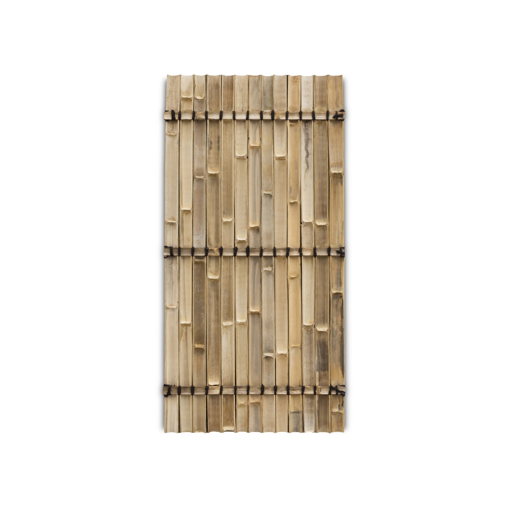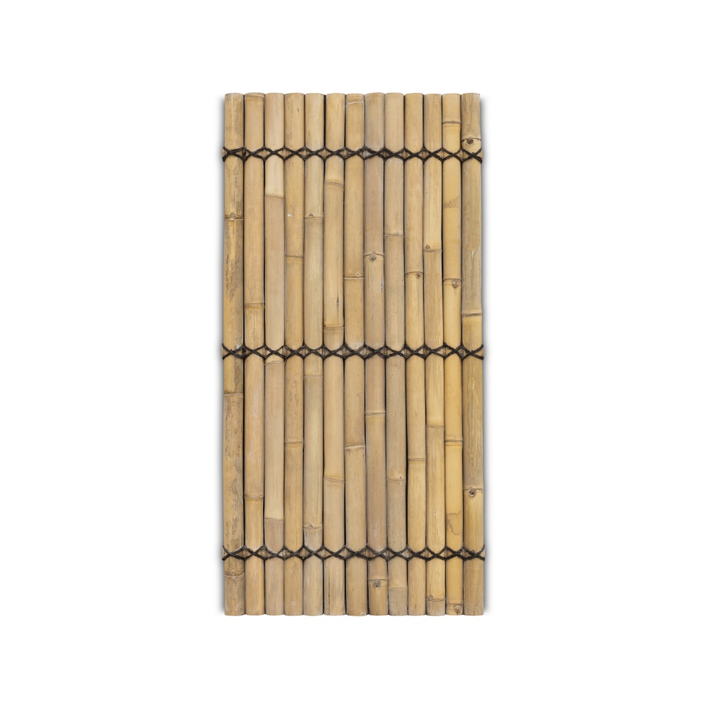 Gehalveerde bamboe schutting is perfect om tegen een bestaande muur of schutting te bevestigen. Binnen no-time een vakantiegevoel in je eigen achtertuin, wie wil dat nu niet? Deze schutting is 90 cm breed en heeft een hoogte van 180 cm. De gehalveerde bamboe palen van de schutting zijn 6-9 cm in diameter en aan elkaar gemonteerd met horizontale latten en zwart palmtouw.