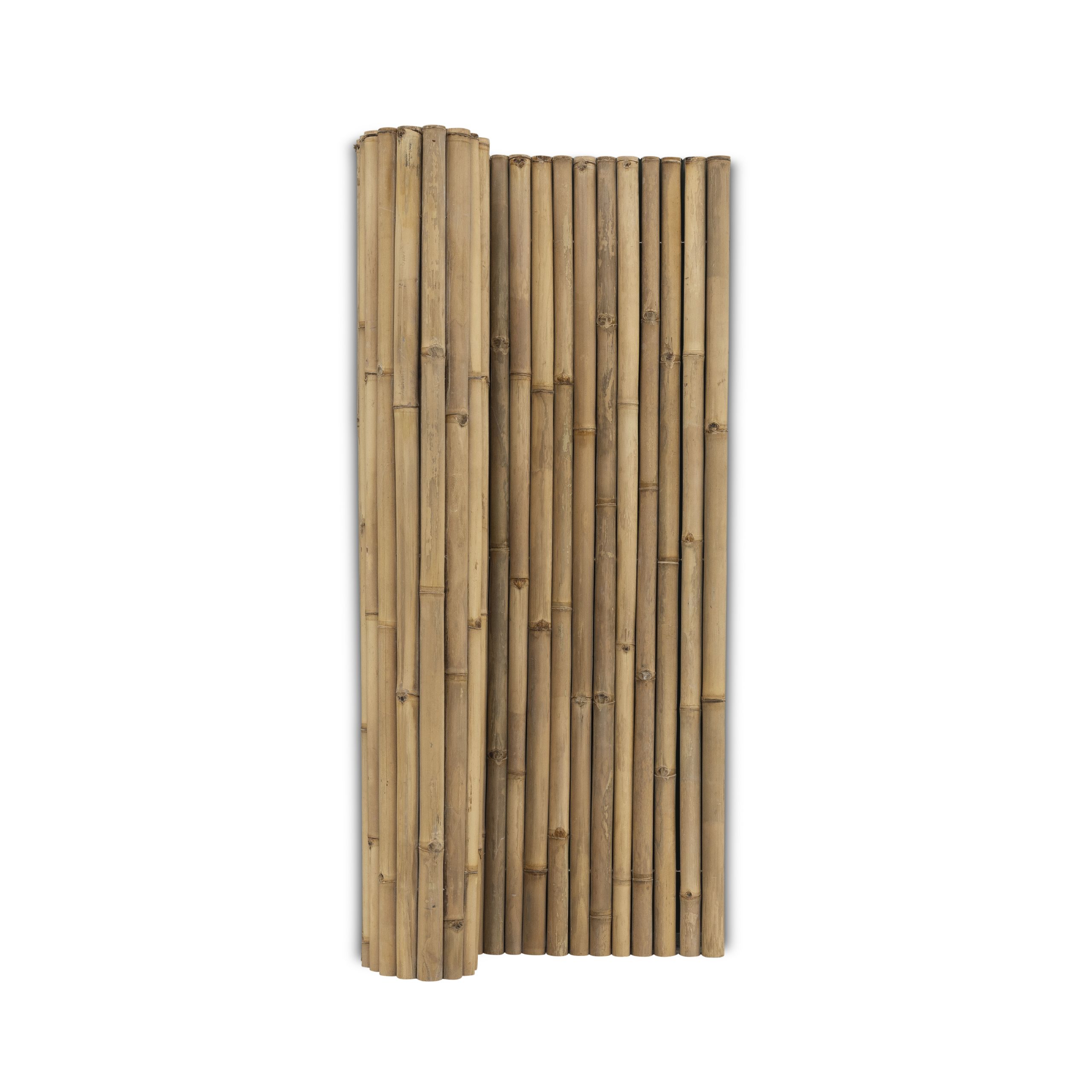 Bamboemat Giant op rol gemaakt van bamboestokken van 4-6 cm breed is ideaal voor tegen een bestaande schutting of gaashekwerk. Bovendien is deze bamboemat gemakkelijk te monteren met binddraadjes of tie-wraps tegen een gaashekwerk.